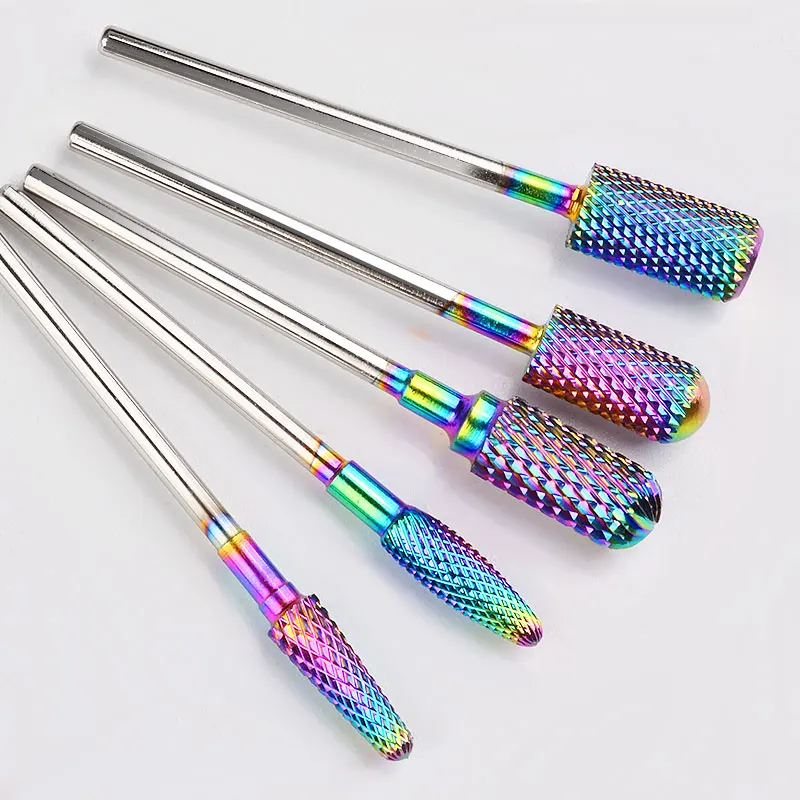 Name: Fresa de acero de tungsteno arcoíris para manicura, removedor de esmalte de Gel, juego de brocas