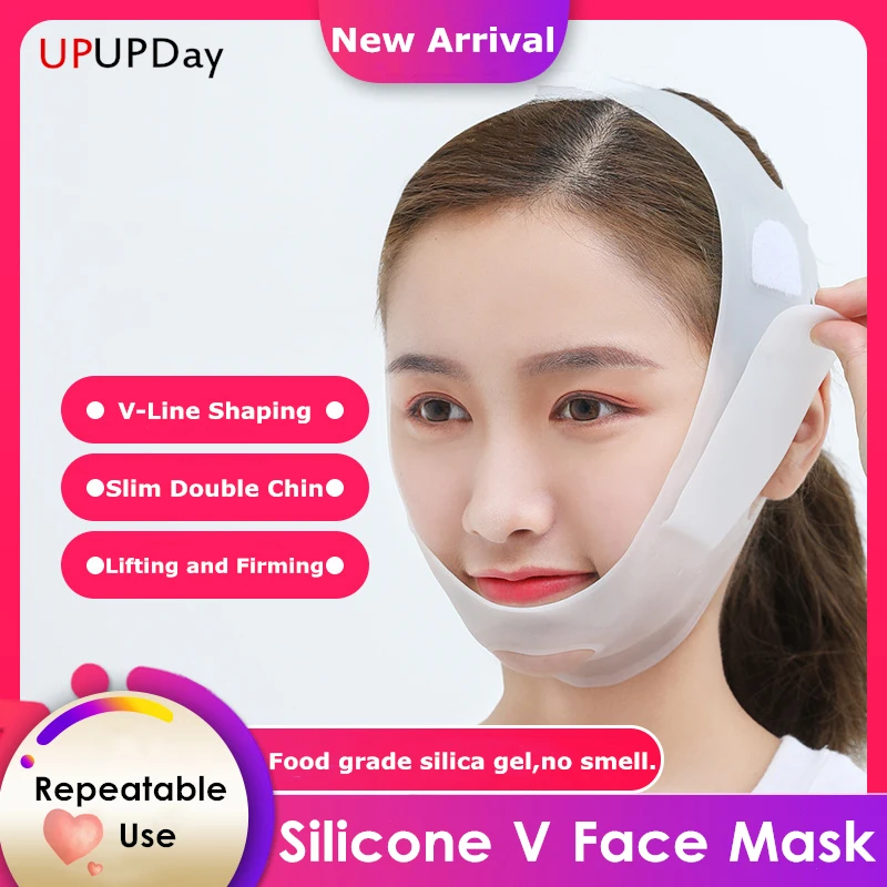 Mejor Herramientas de cuidado de la piel de UPUPDay Official Store por Nueva máscara Facial Nano de silicona con forma de V para levantar la línea Estiramiento Facial forma de V, máscara de vendaje para adelgazar la mejilla, la barbilla y el cuello, cinturón Delgado